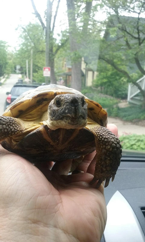 Our turtle Shirley has escaped once again from turtle camp on J. Road, near V. Ave. She should be wearing a piece of blue duct tape on the back of her shell. She’s very friendly. She may have gotten pretty far – last time, she got to near J. Road and R. Road. before she was found.