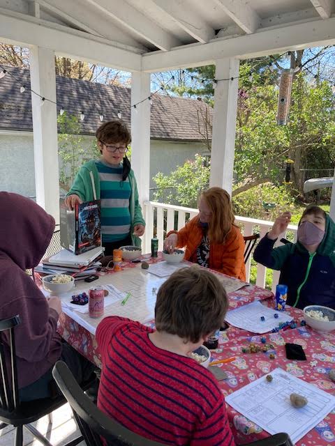putting up canoes, cooking outside
