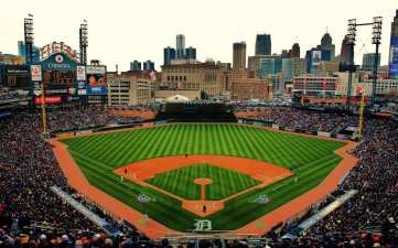 (enjoying a perfect day at a detroit tigers game – not a care in the world)