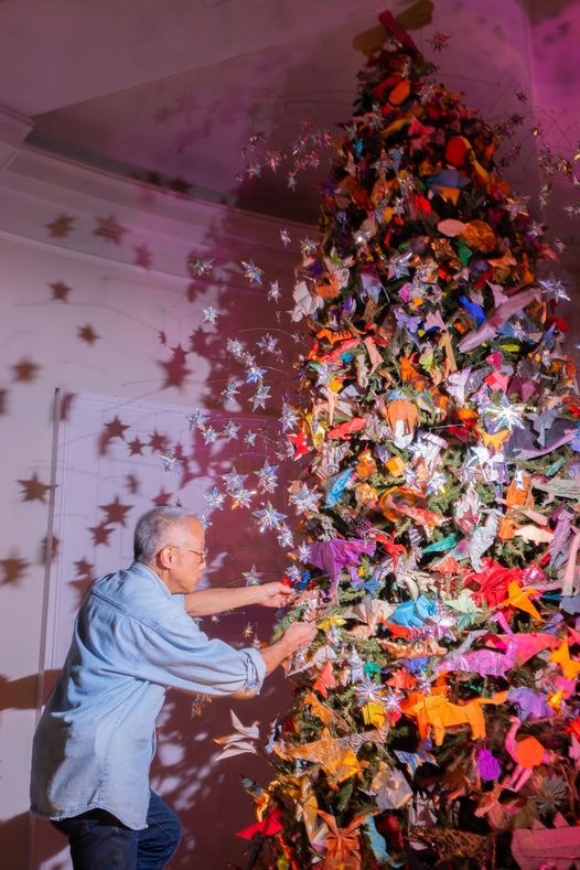 the tree at the American Museum of Natural History has been decorated with paper ornaments.