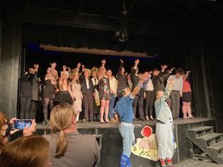 writers, actors, stage crew, director, light crew, props, costumes, staging, sound