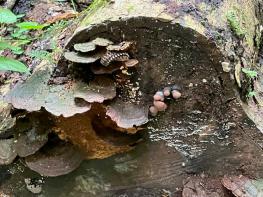air plants, leaf-cutting ants, army ants, red macaws, giant caterpillars, fungi, great kapok trees