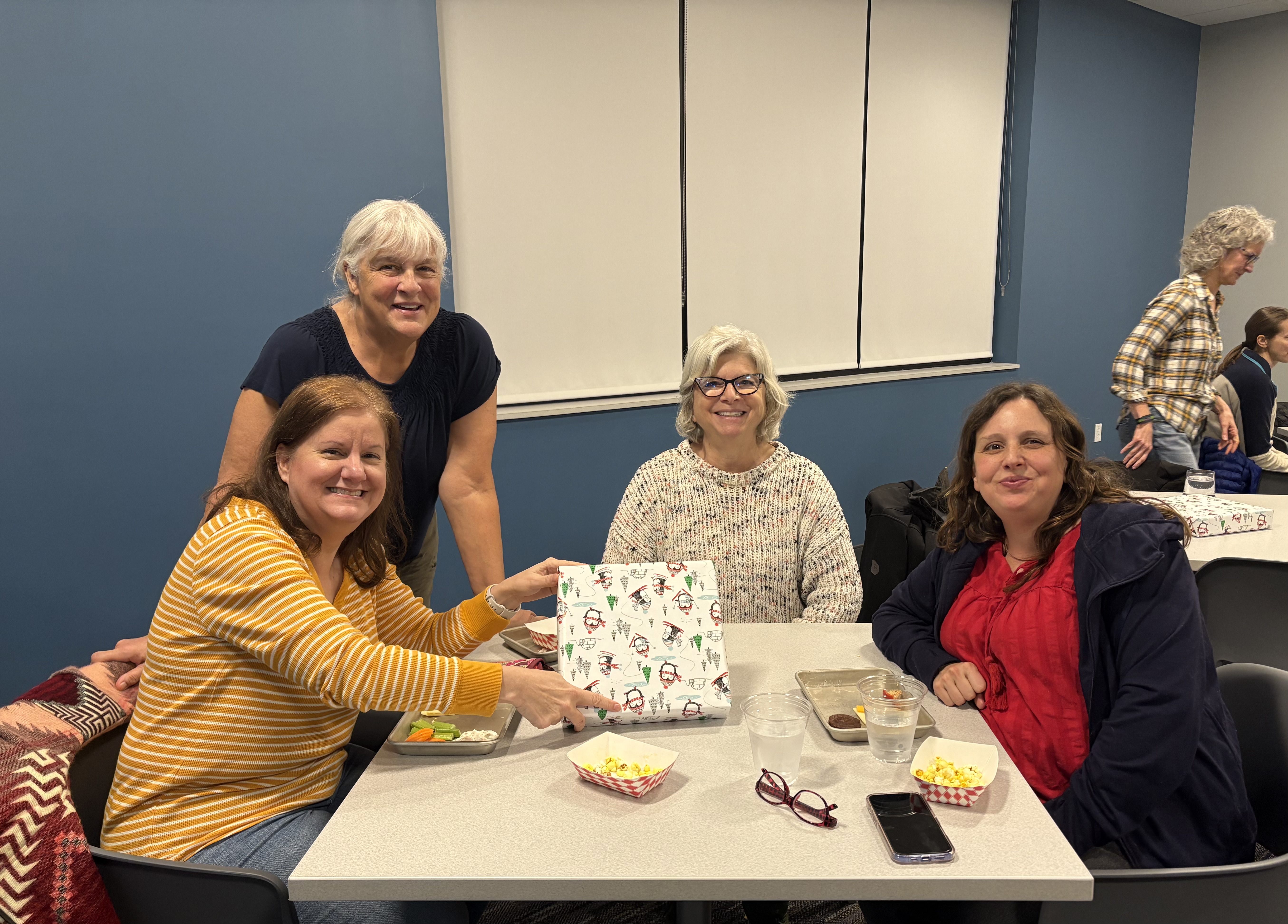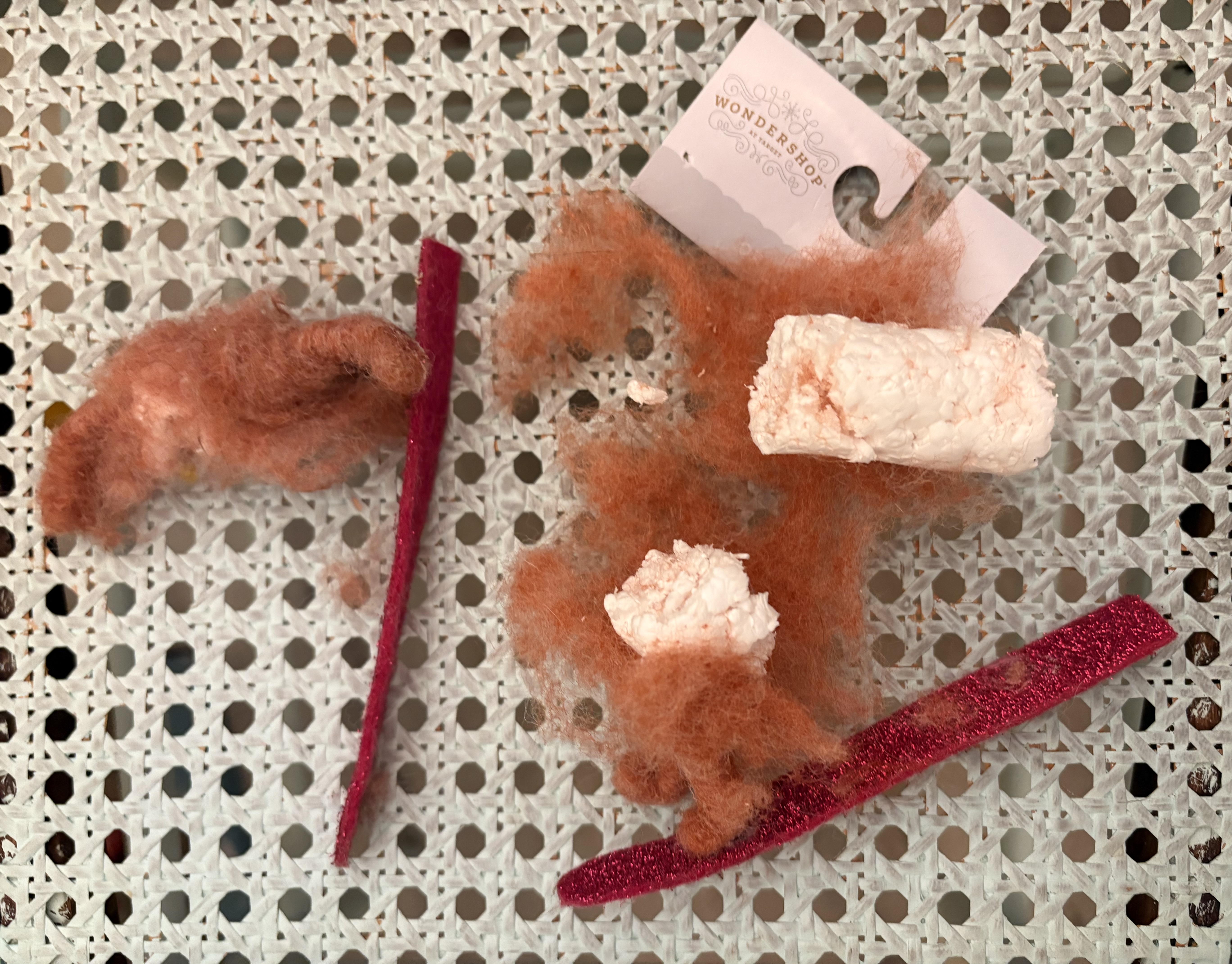 ‘who has the pink dots, is that a bird’s beak, what does that word say, look for purple…’