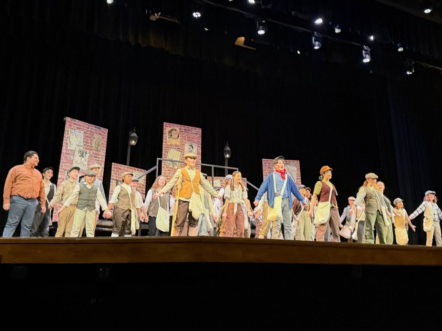 singing and dancing on stage in ‘newsies’