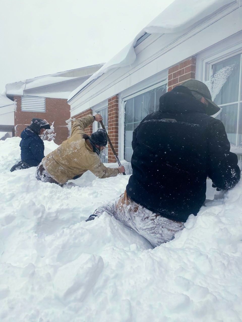 volunteer firefighters and Mackinac Marine Rescue Crew dig out the school