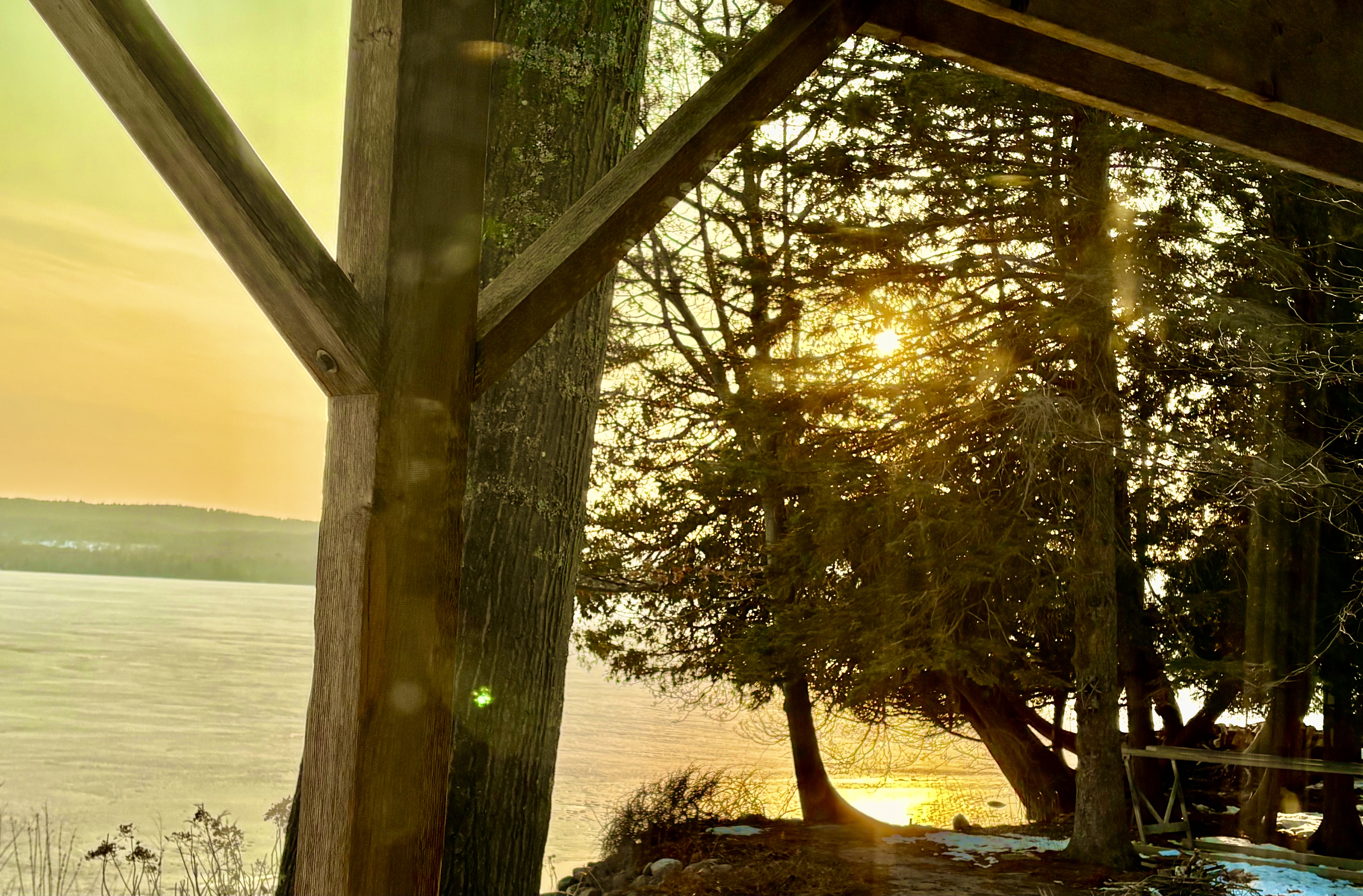 the lake still snow covered, the sun came up