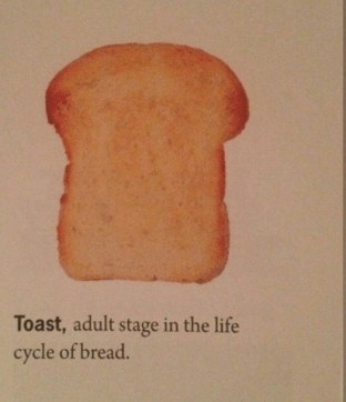 “What is the right way to cut a piece of toast?”Diagonally, insists the narrator in NIcholson Baker’s novel “The Mezzanine.” It creates a “triangularly cut slice” which in turn yields “an ideal first bit.” With rectangular toast, you must “angle the shape into your mouth, as you angle a big dresser through a hall doorway.” (Dwight Garner, NYT book critic’s new essay on the literature of breakfast food.)