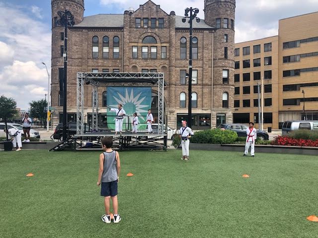 practicing karate skills, self defense, getting a good workout