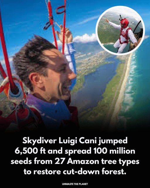 Though there are many efforts to plant trees, the remoteness of the jungles makes it difficult. Drop in Luigi Cani, the world-record-holding skydiver who completed a wingsuit jump on a motorcycle into the Grand Canyon and felt like there was something he could do. After 14,000 jumps, Cani was ready to put his skills to good use.