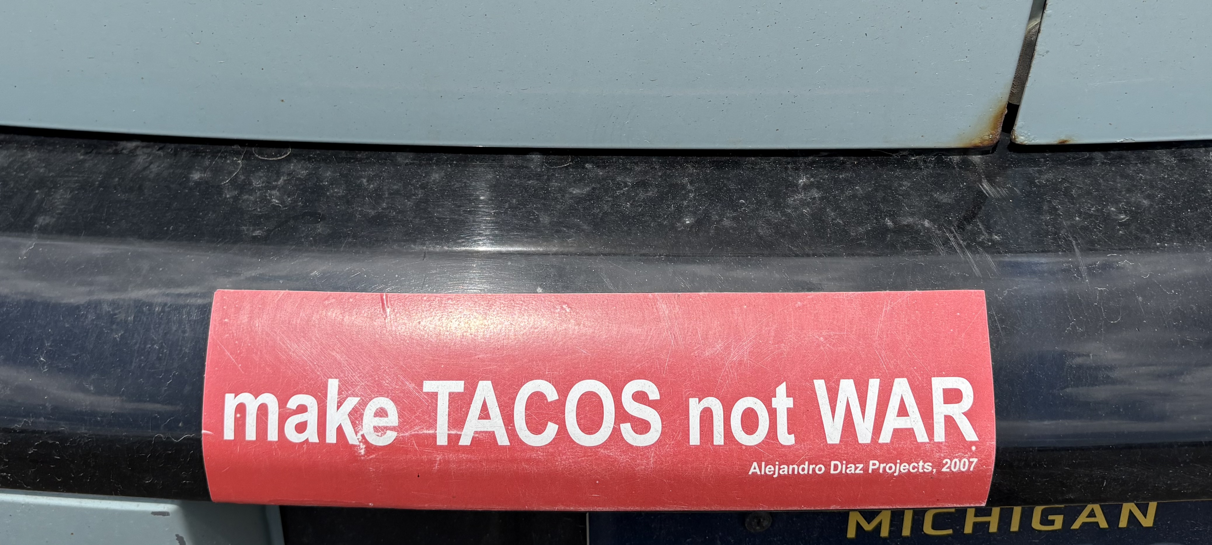 Oct24 peace by taco. Posted on October 24, 2025 by beth Standard i’m all in on this approach. a much better way to live. — ’embrace the taco.’ – john kresl Share this: Click to share on Facebook (Opens in new window) Facebook Click to share on Pinterest (Opens in new window) Pinterest Click to email a link to a friend (Opens in new window) Email Click to print (Opens in new window) Print Click to share on Bluesky (Opens in new window) Bluesky Click to share on LinkedIn (Opens in new window) LinkedIn More Click to share on Reddit (Opens in new window) Reddit Click to share on X (Opens in new window) X Click to share on Tumblr (Opens in new window) Tumblr Like Loading...