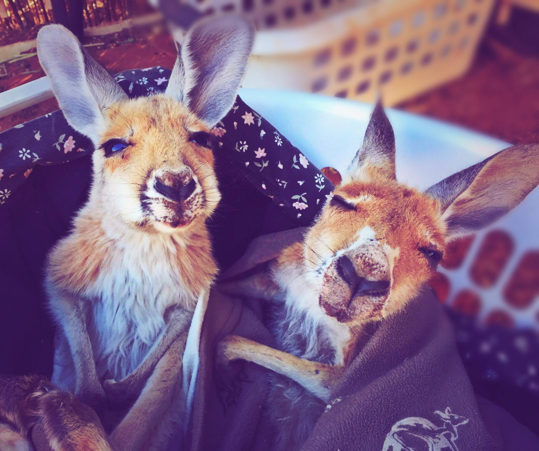 Waru, the rescue kangaroo joey does his best Tyrannosaurus Rex impersonation