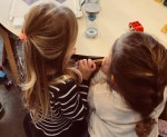 kinders watch closely as the sand slips away.
