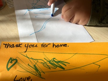 “I made this thank you note. I’m going to give it to my family.”